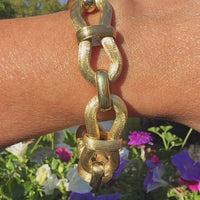 Vintage 18-karaats geelgouden armband van bewerkte, gematteerde grote schakels.